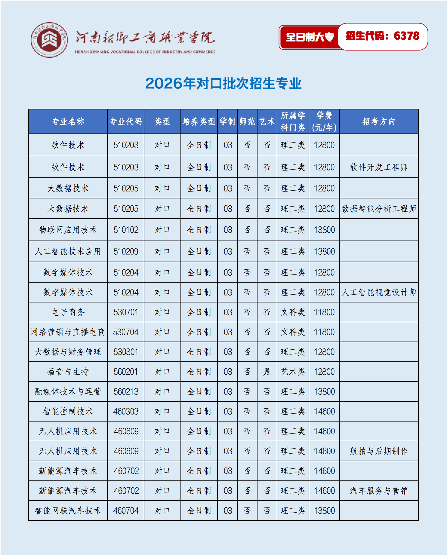 3.物联网应用技术、人工智能技术应用、融媒体技术与运营、智能网联汽车技术专业13800元/生/学年;